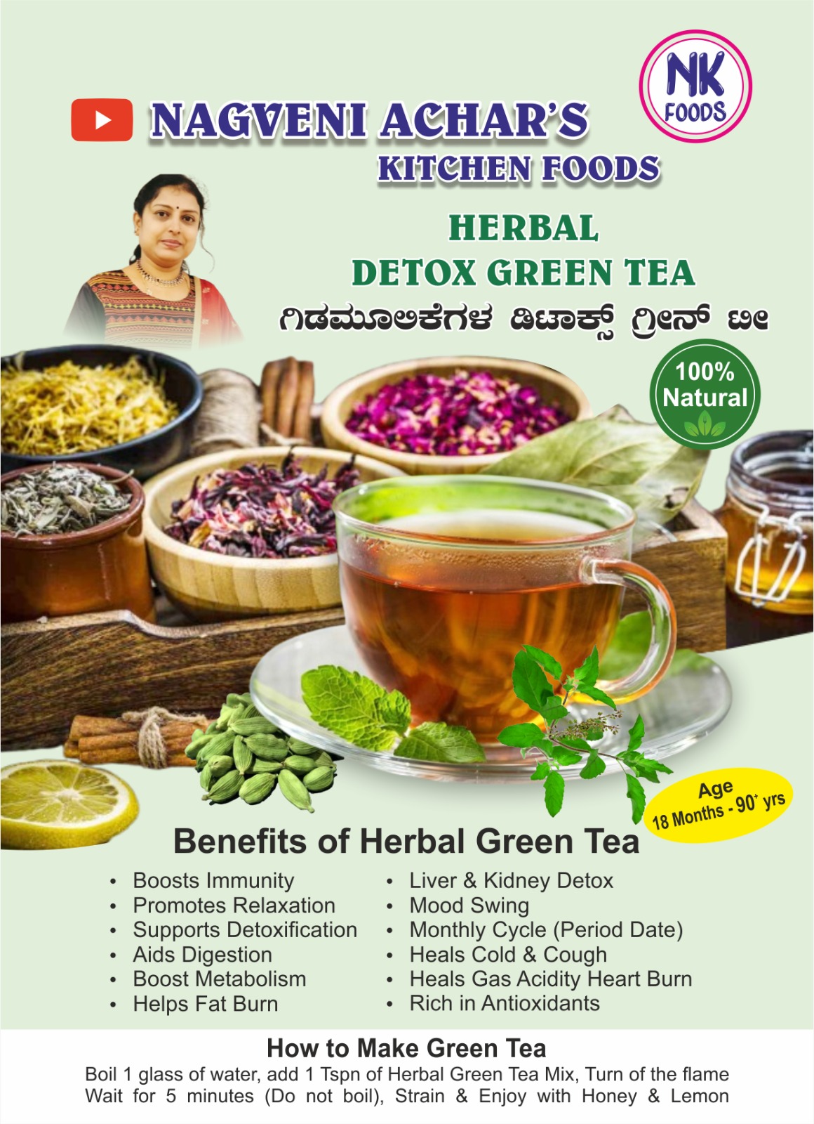 At Nagaveni Achar's Kitchen Foods, we prepare authentic homemade products like herbal detox green tea, sambhar powder, ABC malt mix, black rice malt mix, and darshangam sambrani — rooted in tradition, purity, and wellness.
